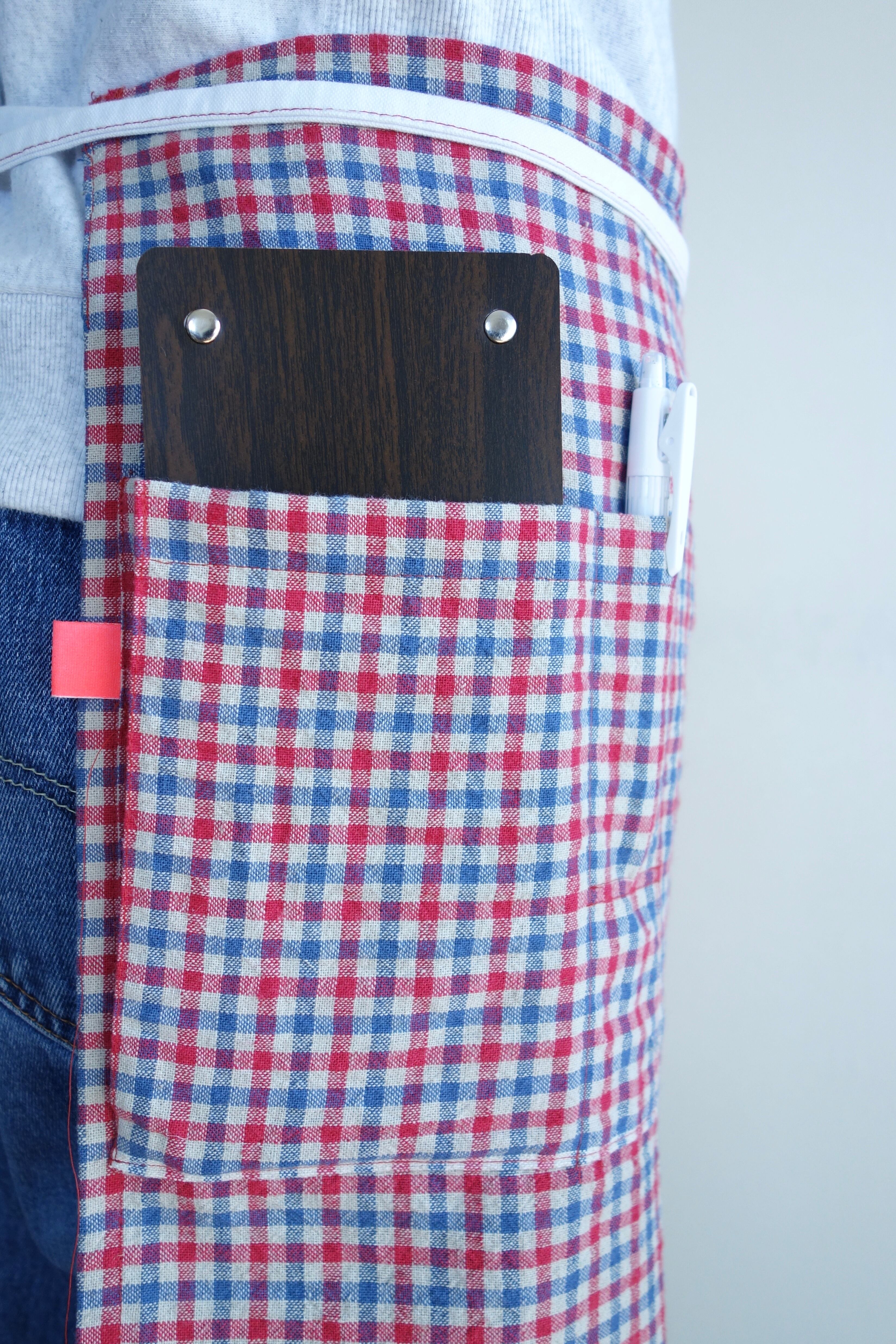 サイズ感にこだわったトリコロールのチェック柄前掛け。